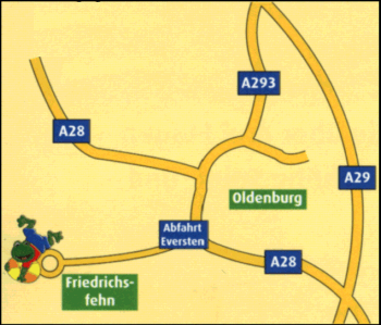 In Oldenburg die A28 an der Ausfahrt Eversten verlassen und über die Hauptstraße, später Edewechter Landstraße, in Richtung Edewecht fahren. In Friedrichsfehn fahrt ihr so lange geradeaus, bis ihr zum Kreisel kommt. Den verlasst ihr in der dritten Ausfahrt und schon seht ihr Friedolin´s Spielparadies auf der linken Seite. |
